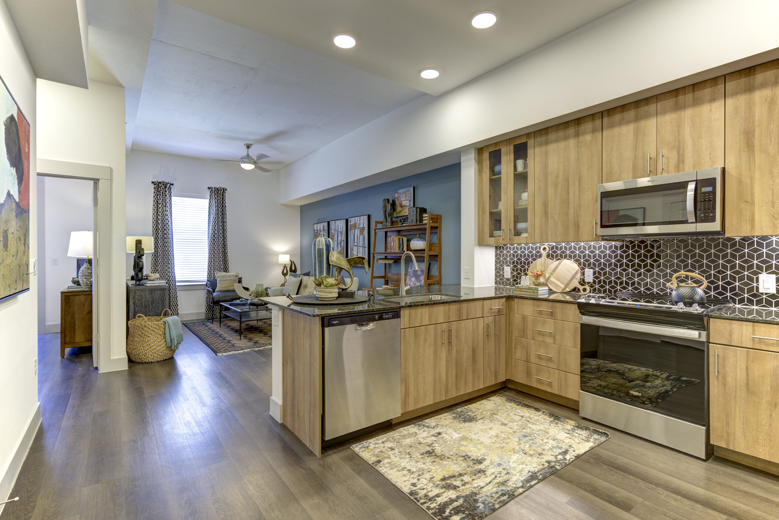 - Alexan Rivercrest’s Leasing Office will be on your right, behind Rosita’s.